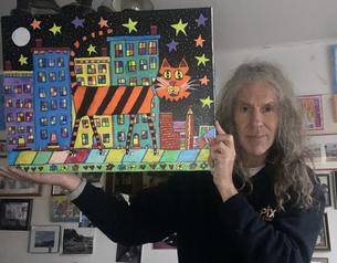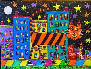 "Mister Pusscat On A Starry Night" - acrylic and markers on 9"x12" canvas GIFTED
