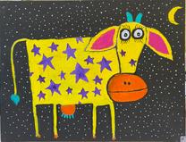 "The Cow Jumped Over The Moon- acrylic on 8"x10" canvas board GIFTED