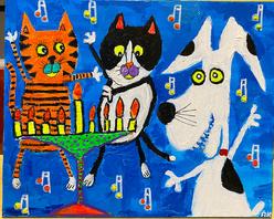 "Cats In Their Splendid Boxers" - mixed media on 9"X12" canvas GIFTED